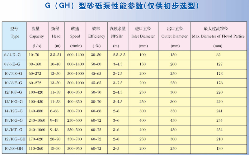 G/GH系列砂礫泵主要適用于顆粒太大以至于一般渣漿泵不能輸送的強磨蝕物料的連續輸送。適用于挖泥船挖泥,疏浚河道、采礦及金屬冶煉爆渣的輸送等。其中GH型為高揚程砂礫泵。